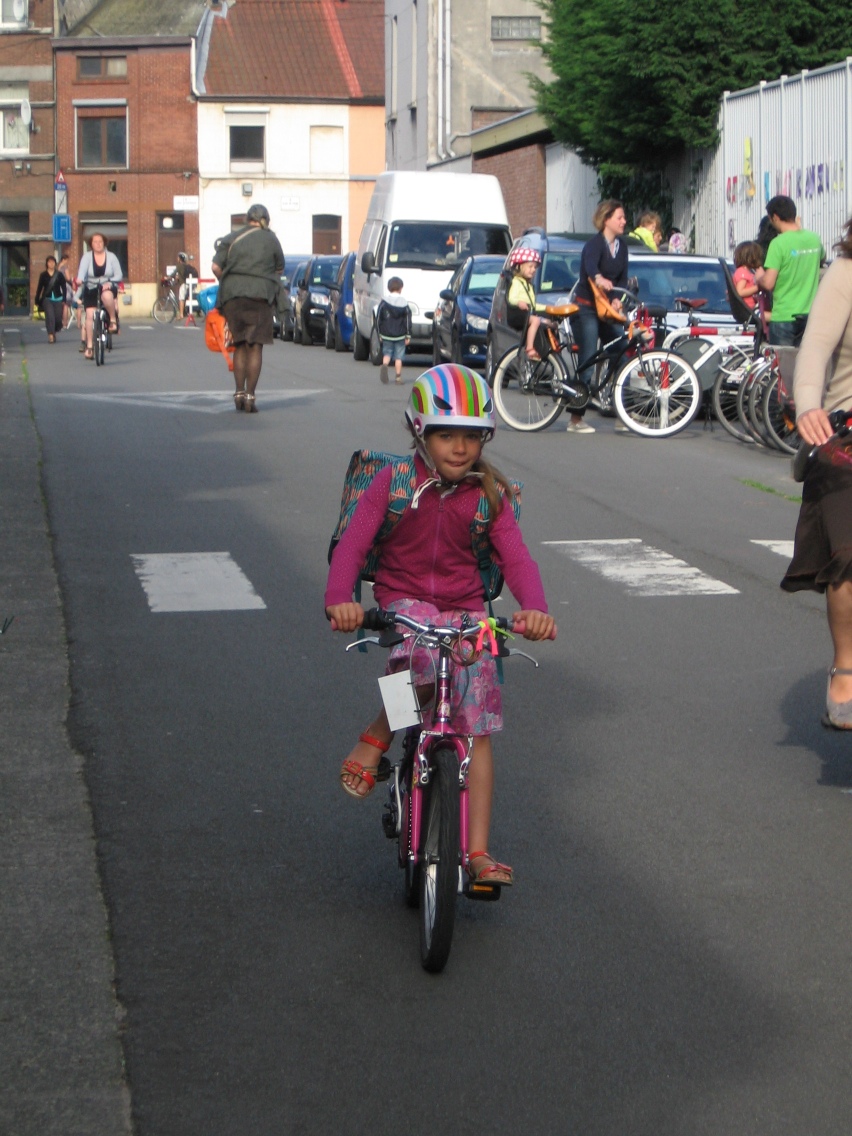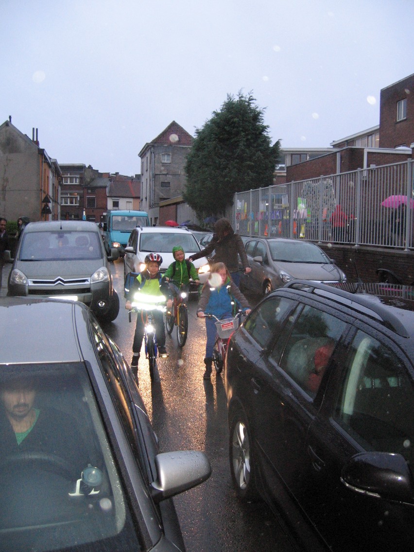 Nu zijn schoolstraten nog de uitzondering in Gent. Tijdens de fietstelling 2017 telden we aan de Heiveld ruim 600 fietsers en slechts enkele wagens. Nochtans stellen we nog steeds vast dat die weinige wagens nog steeds voor gevaarlijke situaties zorgen: midden op straat stoppen, portieren die openzwaaien, keren op het kruispunt,... en daartussen die 600 fietsers. Wordt het dan geen tijd om de schoolstraat standaard te maken voor elke schoolpoort in Gent.