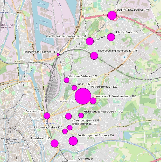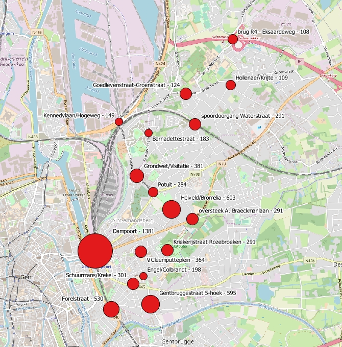 Het officiële persbericht kan je terugvinden op de website van GMF, maar hier zijn de resultaten voor Sint-Amandsberg. De conclusies van 2017 blijven dus geldig, en mogen zelfs gerust nog wat worden aangescherpt. Daarbij rapporteerden onze tellers ook nu weer enkele gevaarlijke situaties:
